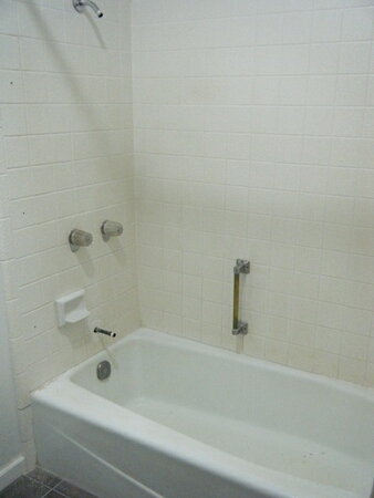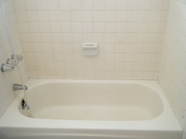 The existing caulking is removed, and the tub and walls are recaulked